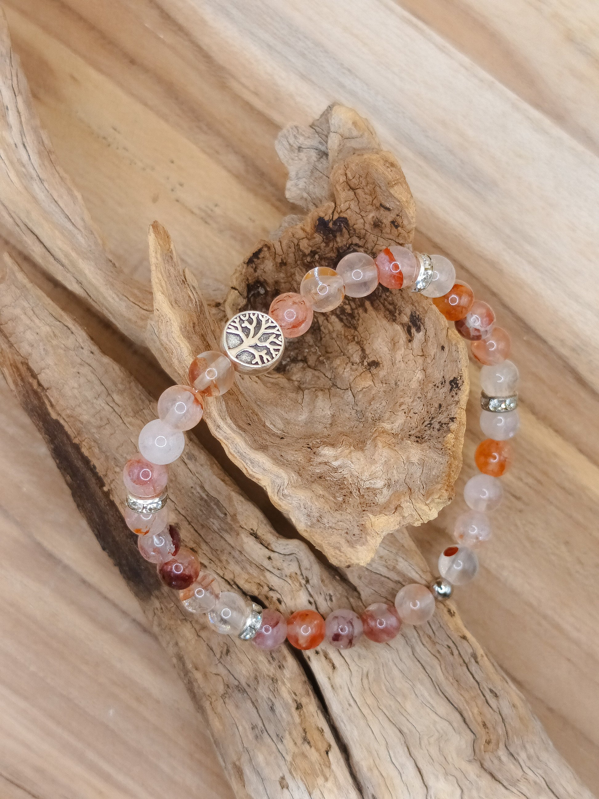 Le bracelet Enyo est composé de perles naturelles de quartz hématoïde rouge, montées sur un fil élastique résistant.