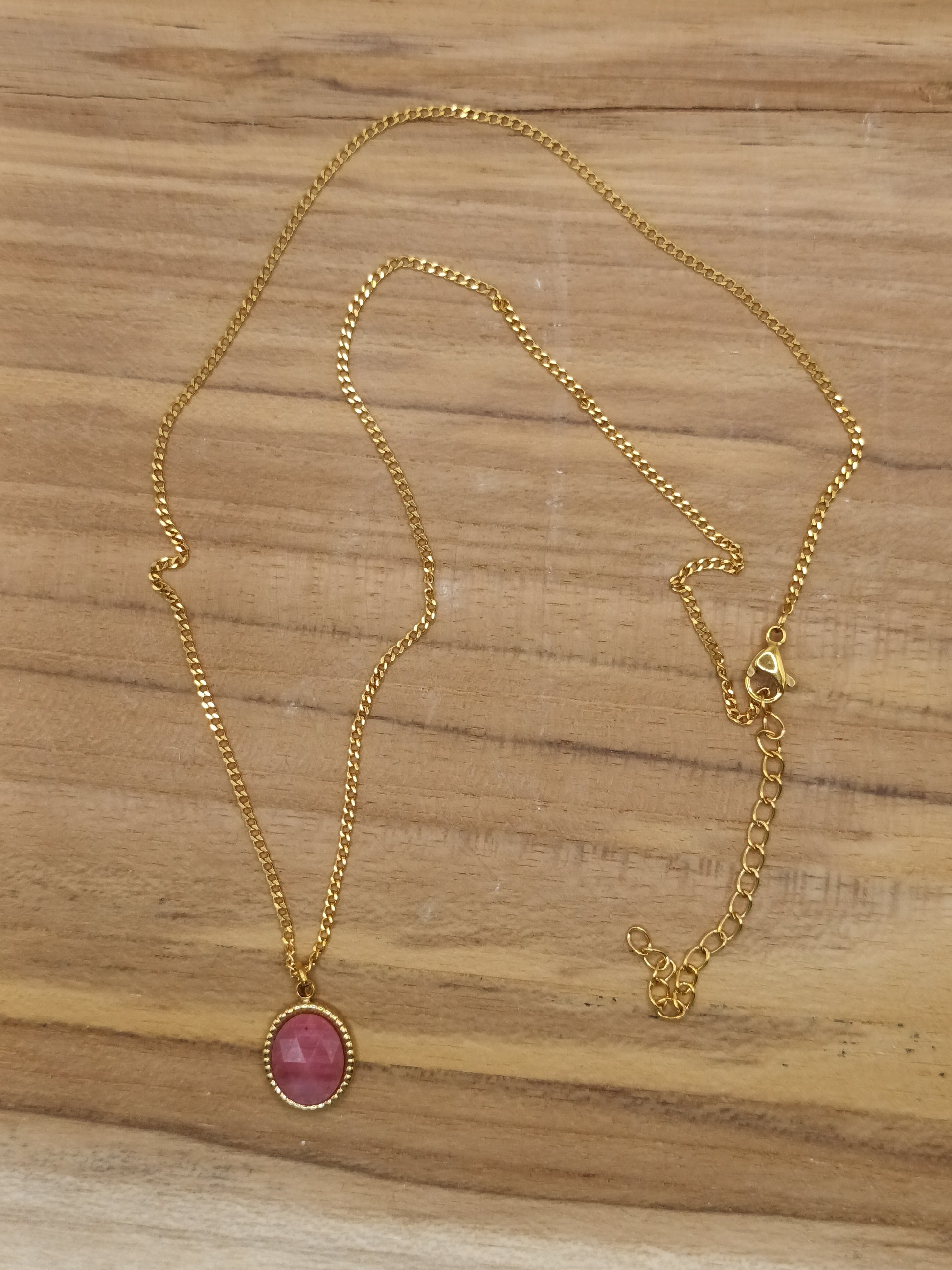 Collier en acier inoxydable doré avec pendentif en rhodonite