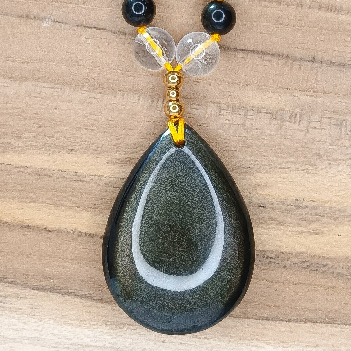 Le mala Apollon est collier composé de 108 perles en pierres naturelles d’obsidienne dorée et de cristal de roche, agrémenté d’un pendentif en obsidienne dorée. Monté sur un fil nylon solide, il est délicatement terminé par deux petites perles en acier inoxydable qui assurent élégance et durabilité.