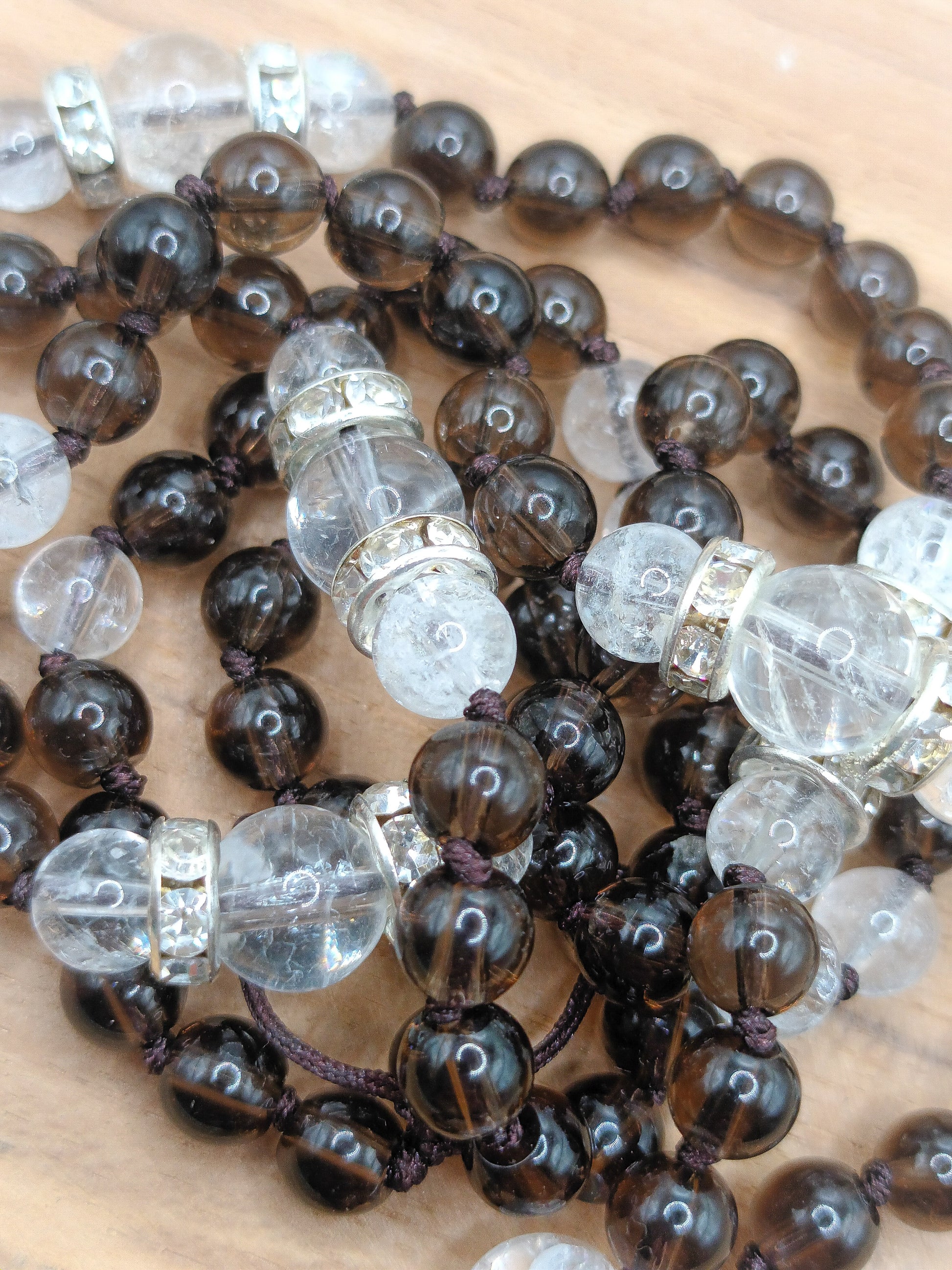 Le mala Chiron est composé de 108 perles en pierres naturelles de quartz fumé et de cristal de roche, agrémenté d’un pendentif en quartz fumé. Monté sur un fil nylon solide et terminé par deux petites perles en acier inoxydable, il combine beauté minimaliste et énergie spirituelle.
